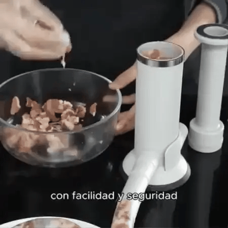 Su diseño manual es súper fácil de usar, no necesitas experiencia. Solo agrega tu mezcla, presiona ¡y listo! Perfecta para hacer salchichas, chorizos, longanizas.